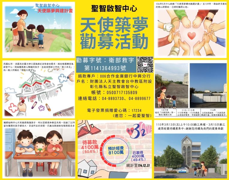 👤 戶名:財團法人天主教會台中教區附設彰化縣私立聖智啟智中心